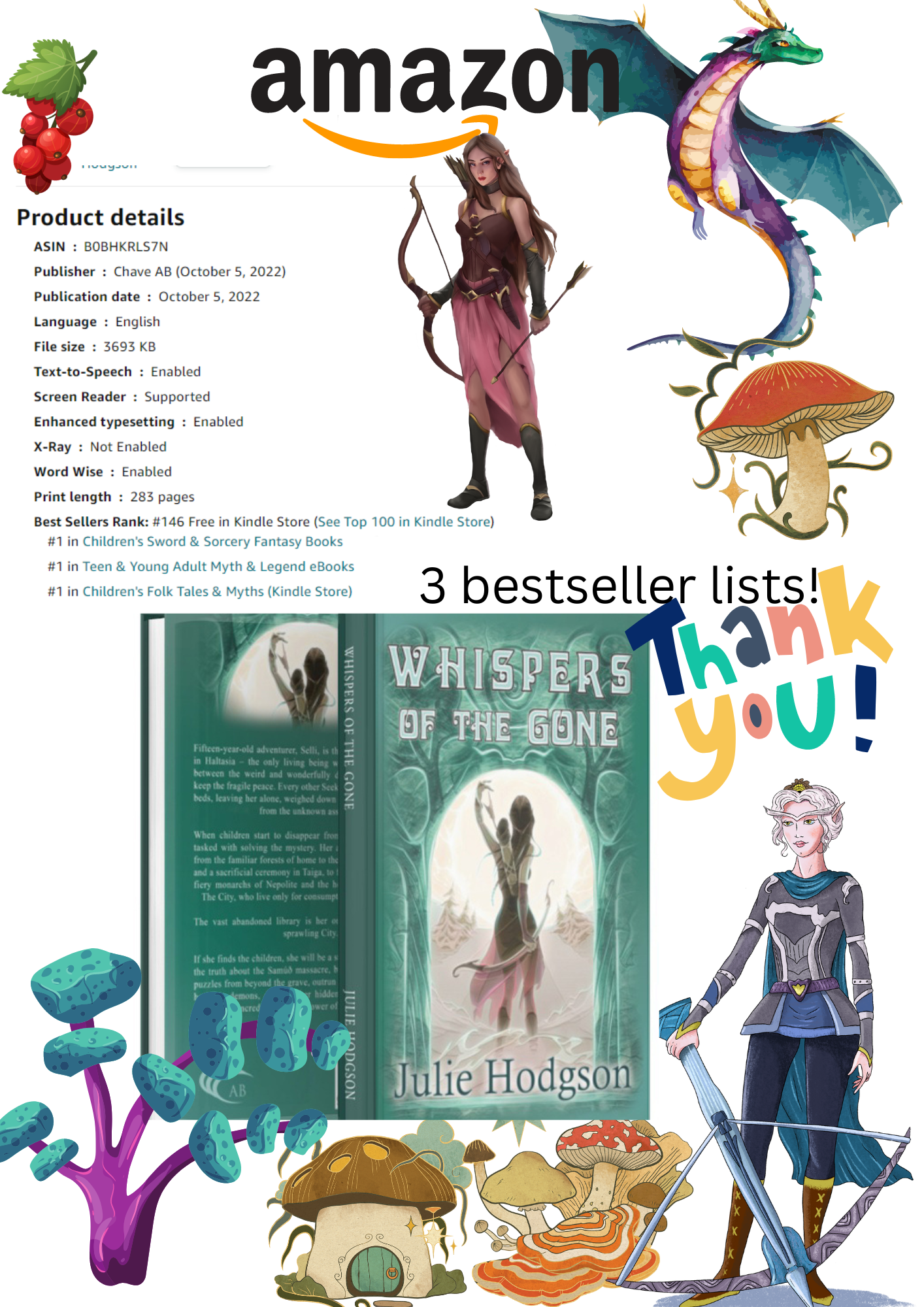 Just out my Elven fantasy novel, complete with a dragon called tally is flying off the shelves and is now, as I write it is at number 6 on the best sellers list.